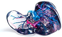 J750は、Polyjet方式として世界で初めて、最大6種類の造形材料を混合するマルチマテリアル機能を搭載。5種類の色付硬質カラー材料シアン(C)・マゼンタ(M)・イエロー(Y)・ブラック(K)・ホワイト(W)を組み合わせることによりフルカラー3Dプリントが可能です。 透明材料やラバーライク材料も同時にしよう可能、豊かな色彩表現と質感表現を同時に実現。Polyjet方式3Dプリンターの上位機種であったConnexシリーズでは、マルチマテリアル機能により混合できる造形材料は最大3種類でした。また、J750には表面にテクスチャ(質感)を与えたデータで造形することができるテクスチャマッピング機能を新たに搭載されており、意匠表現にも適しています。さらに最小積層厚0.014㎜は、ストラタシス社製品の中では最も積層が細かく、なめらかな高精細造形が可能。