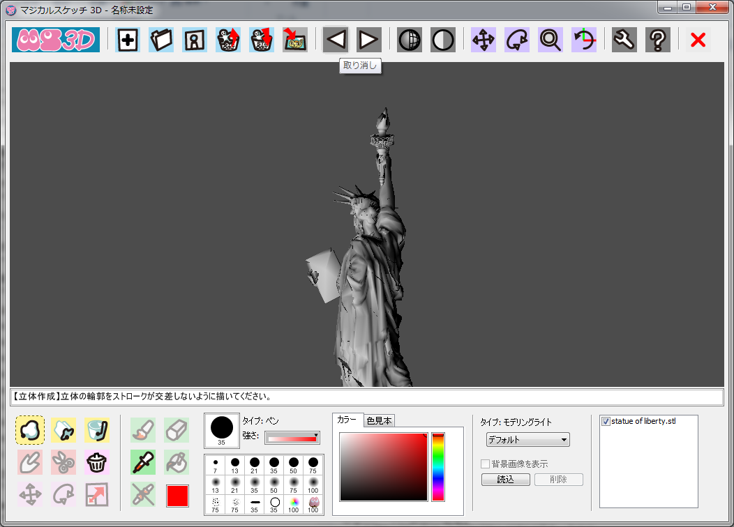 マジカルスケッチ 3Dはむずかしい3Dの知識なしに3Dプリンタに対応したカラーの3Dデータを作成できるソフトです。